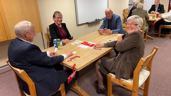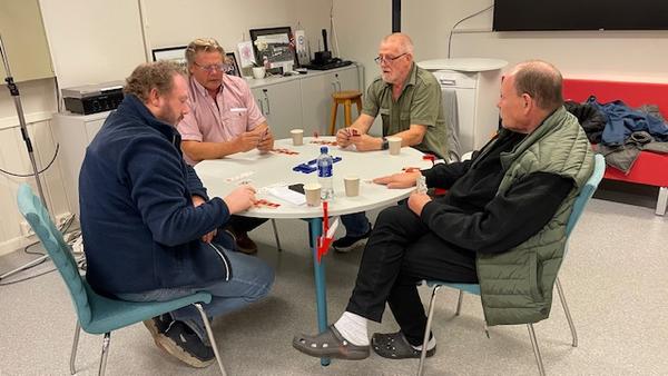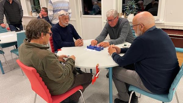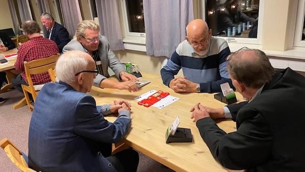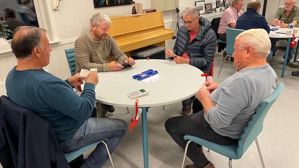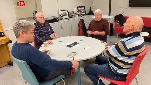 Olav Grefsli og Svein Isebakke vant handikap turneringa. Turneringa gikk over 5 kvelder og ble spennende og uhyre jevn. Etter 135 spill hadde Olav og Svein 3,3 prosentpoeng mer enn Unni og May Irene på andre plass. Bildet er fra da parene møttes i Jubileumsturneringa.