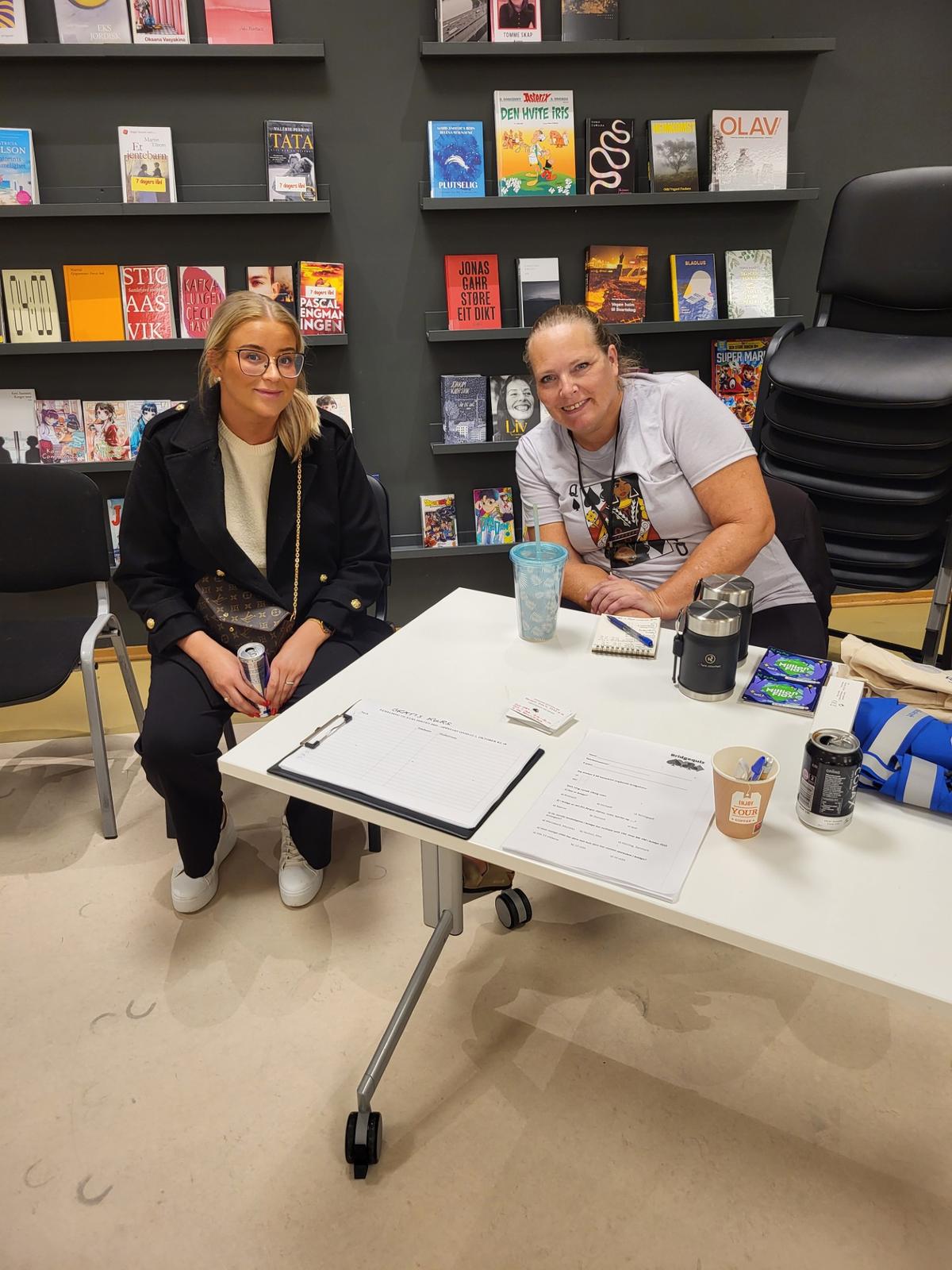 Elisabeth satt ved premiebordet, og ga tilskuere mulighet til å løse en quiz, samt melde seg på kurs. Henriette hjalp til.