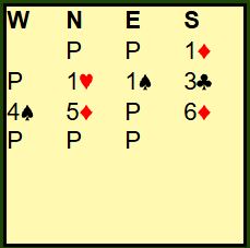 Syd fikk et valg som handlet om hvor omtimistisk han burde være. Der Fredrik Helness (Farta) satt syd åpnet han med 1 ruter etter pass-pass fra nord og øst. Vest passet og nord meldte 1 hjerter. Da kom øst innpå med 1 spar, og Fredrik hoppet til 3 kløver. Vest spratt til 4 spar, og da sa nord 5 ruter. Ville du passet, eller tatt sjansen på slem?