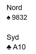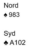 Her er det opplagt at det må spilles på kløveren, for det er kun seks toppstikk utenom ekstra stikk i den fargen. Så kløverfinessen må tas. Hvem er det som kommer inn om den finessen ryker? Svar: vest. Og det er hele poenget...