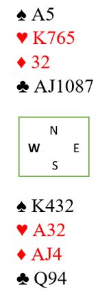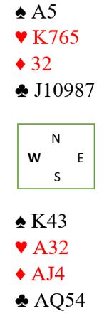 Øst kan selvsagt ha både damen og kongen i ruter, og i så fall er det ingen problemer. Men om vest har ruter konge er din ruterkombinasjon sårbar. Før du bestemmer deg om hva som bør gjøres i første stikk ser du litt på hva som vil bli fortsettelsen i spilleføringen. Litt planlegging er som kjent bra, og helst bør det gjøres før du har spilt på til første stikk!