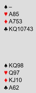 Hvis N/S får melde i fred bør det vel gå an å finne frem til 6 kløver som har bra sjanser. Det er imidlertid langt i fra rett frem å vinne tolv stikk.