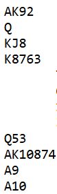 6NT er beste slem. Den vinnes med fem kun hjerterstikk. Det blir som nevnt tretten stikk om hjerteren går, og om det er en taper i fargen blir det tolv stikk. Det er kun avhengig av at hjerteren ikke setter verre enn 4-2, men det går også bra om den sitter 5-1 om nieren eller knekten sitter singel. Og om en av dem har kn-9 femte blir det bare tre hjerterstikk, men da er det en mulighet at kløveren sitter 3-3, eller kløver J-9/Q-9 dobbelton. Hjerteren testes med det samme, og om det etter to runder viser seg at det er to hjertapere skifter spillefører fot og satser på kløveren. Alt i alt er vinnersjansene i 6NT skyhøye. Slik så hele spillet ut: