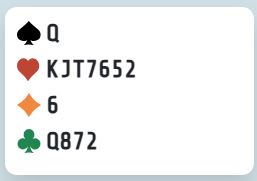 Selv er jeg ikke av de aller mest aggressive sperremelderne, og synes det med veldig spreke sperrehopp og sperreåpninger har gått litt vel langt. Men passiv kan man heller ikke være, og selv i faresonen er jeg tilhenger av å tråkke til med hopp til tre-trinnet så godt som alltid med en bra syvkorts farge. Dette er også en 7-4 hånd, så i gunstigere soneforhold ville det kanskje vært aktuelt å hoppe til 4 hjerter.