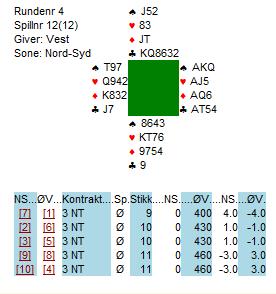 9 stikk og vel fortjent smultring og gratulasjoner fra makker.