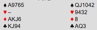 Sunnfjords øst hoppet rett til 4 spar, en melding de fleste bruker som svake kort, men med masse trumf og litt fordeling. Hvis 4 spar blir oppfattet sånn er nok disse kortene for sterke for den meldingen. Og Sunnfjords vest som hadde kanonkort oppfattet nok 4 spar på den måten, for han passet.