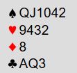 Kanskje... Han var imidlertid litt bekymret for trumfkvaliteten, og det behøver ikke være helt potte tett i kløver heller. Så han hoppet til 5 spar. Øst som hadde verken kongen eller esset i trumf passet, og de ble spillende utgang.