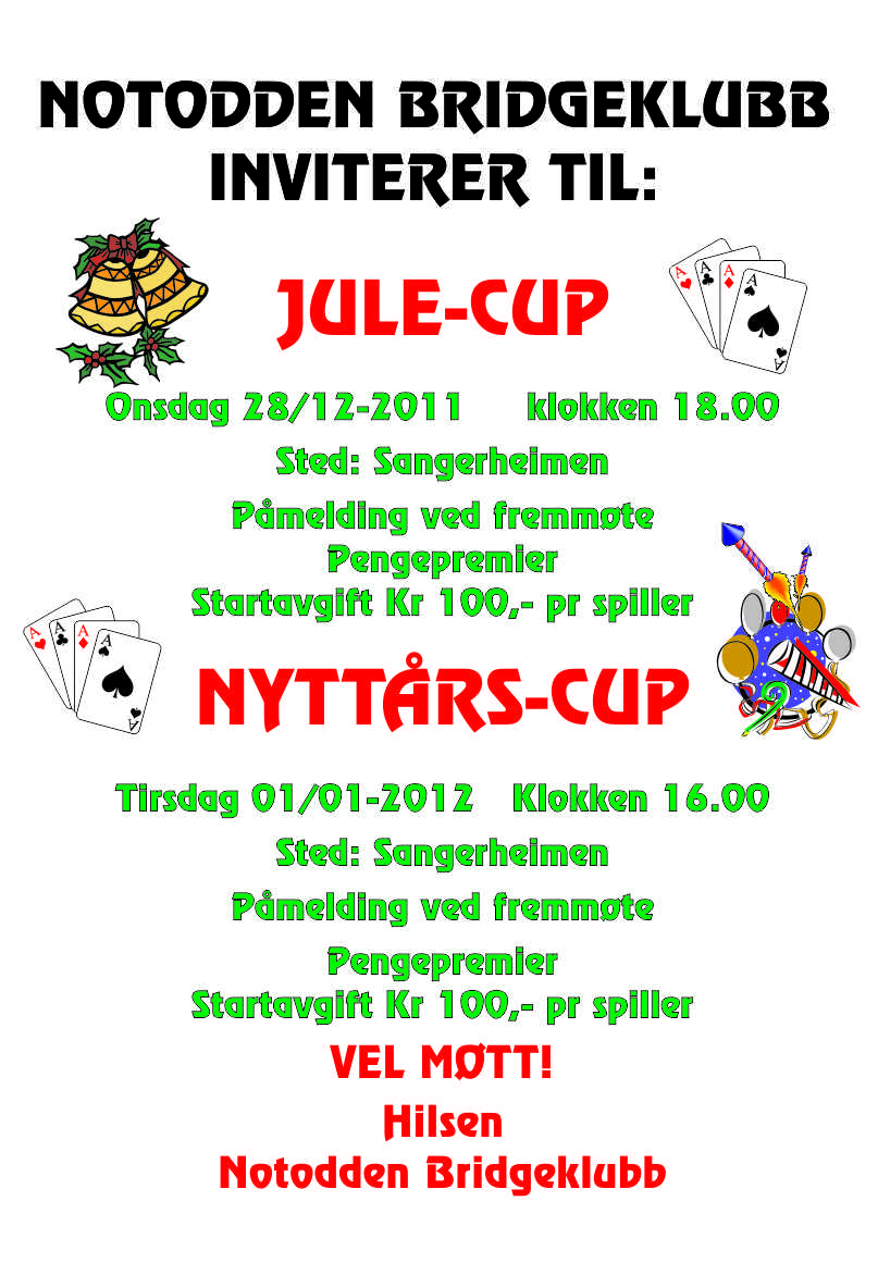 Vi må heller ikke glemme Joleturneringen i Seljord 27 desember. Ingen Notodden par har meldt seg på her
