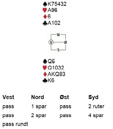 Arne Kristian og Kåre er gamle ringrever, og dette var vel fortjent. God bridge kommer av gode vurderinger, og spillet under viser hvordan gode vurderinger i meldingsforløpet produserer poeng. Arne Kristian og Kåre sitter øst-vest, og selvfølgelig er det jeg og makker som må unngjelde nord-syd. Sett deg i øst sin stol med korta under og gjør en god vurdering: