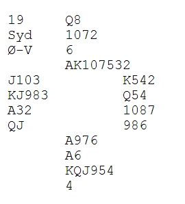 Denne gangen har jeg på en måte mer forståelse for protesten siden vest trodde kløveren var i nord og ikke i syd, men for hans vurdering når han meldte 4hj kan jeg ikke skjønne at det skal bety noe avgjørende . Om to av nord sine spar byttes til kløver og to av syd sine kløver bytter til spar, ville meldingene kunne gått akkurat likedan. Nord har Kxx, xx, Exx, Dxxxx og syd har xx, KJx, DJxxx, KJx. Det ville fremdeles være beit(er) i 4hj.