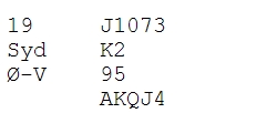 Øst meldte 2kl (!) og to passer fulgte. Nå var det en god venn av Nils som hadde meldt 2kl og det var nesten med vondt i hjertet han doblet. Det kom sikkert ikke til å gå pass rundt.