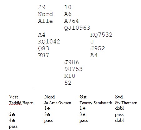"Årets 4. divisjon ble spilt i helgen. Inger Lene står for den mest fantastiske prestasjonen i helgen. Hun var høygravid og på lørdags morgen ble det full fart inn på sykehuset, men tilbake igjen på ettermiddagen slik at hun fikk spilt en kamp. Atle spilte 2 kamper. Bridge på lørdags ettermiddag og hun fødte en velskapt jente på søndags formidag. Slå den!:) Våres hjerteligste gratulasjoner til Inger Lene og Atle."