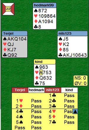 Dette spillet er slettes ikke noe kunstverk, men det er god og aggressiv bridge som belønnes med +800.