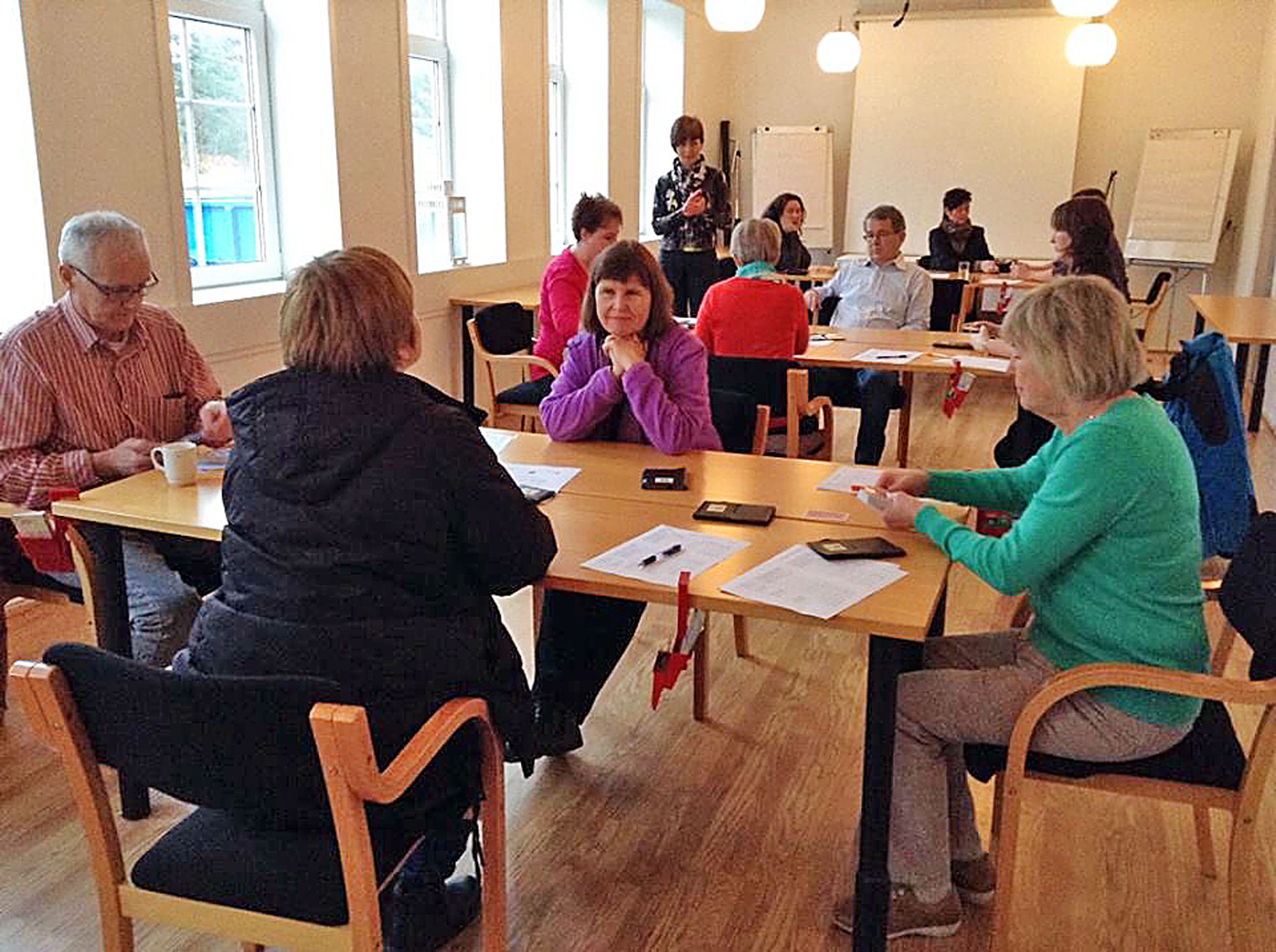 Frå lagturneringa. Ved bordet nærast sit Linda Rasmussen (med ryggen til), Ivar Tønnesen, Kate, og Aase Tønnessen.