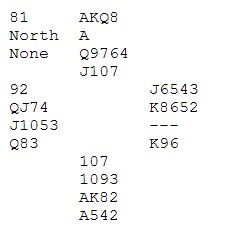 Legg merke til at 5 ruter er bet med tre ganger kløver ut. 4 spar er eneste spillbare utgang.