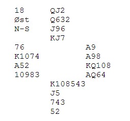 Atle spiller 4 hj og får 2 runder sp ut og skift til ru 10. På vårt bord ble knekten prøvd og senere fikk vi både et ru-stikk og for hj - konge,