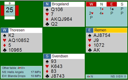 Laget var hele tida med i toppen, men det var jevnt fram til nest siste kamp. Da avgjorde Tonje & co det med en storseier mot Siv Thoresens lag, etter meget bra spilling. Ledelsen var på nesten en kamp før siste runde, så de trengte bare å unngå et stortap. Siste kamp endte 0-3, altså bare 3 IMP i omsetning på 10 spill, noe som vitner om tett og bra spilling på begge bord.