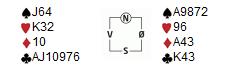 I spillet under spiller du sparkontrakt i øst, og målet er å skrape sammen flest mulig stikk. Du får hjerteress og liten hjerter ut fra syd:
