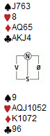 Kløver ut til esset ble fulgt av 2 runder hjerter, den siste til hånden. Nå kom ruterkutten i vinden fulgt av ruter ess og ruter til røff. Så var det sparen som skulle gjettes og når Marcus valgte spar til knekten var det hele over. På andre bordet sperret Christian Bakke med 3 kløver i nord hvorpå øst/vest landet i 4 hjerter.