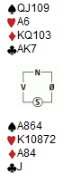 Vest splller ut kløver dame som han får for, og kløver åtte går til Østs tier og kløver ess. Syd spiller nå spar til damen som blir stukket med kongen, og alle følger på en ny kløverrunde til kongen ( knekten er igjen hos Vest ). Hvordan planlegger du spillet?