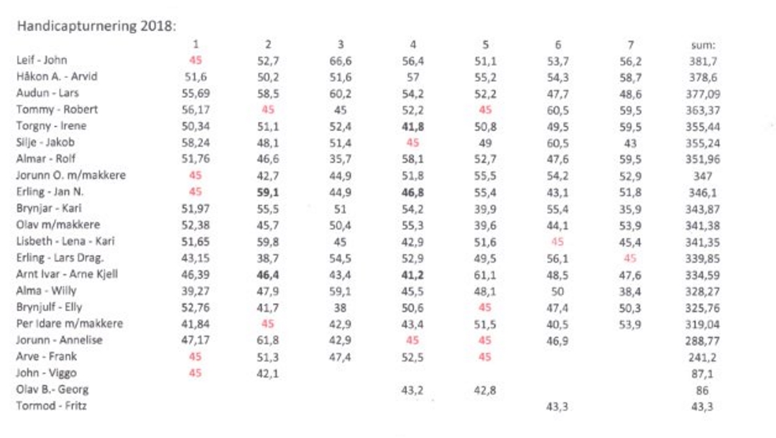 1.Knut Lerfald- Svein Åstrøm +41,2