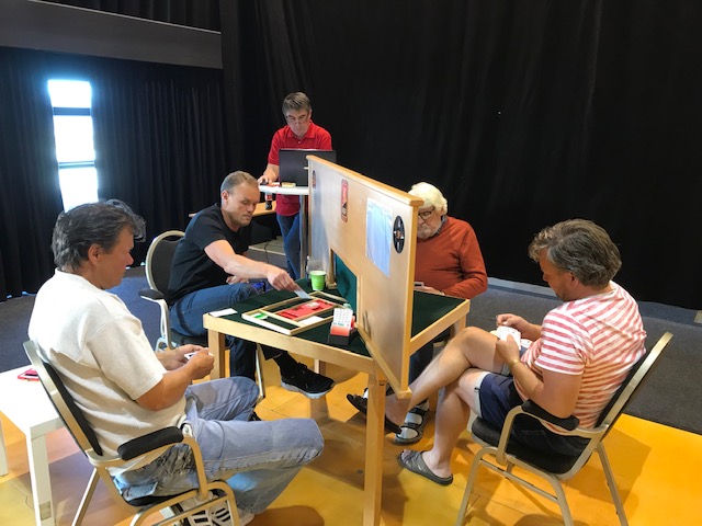 Norge stiller som før skrevet i både Bermuda Bowl (åpen klasse), Venice Cup (for damelag) og D*Orsi (for veteranlag) og spesielt i åpen klasse og i dameklasser ligger de norske lagene fint plassert, etter onsdagens spilling damene på 4. plass og i åpen på 7. plass. Det blir tett spenning fram til søndag da avansement eventuelt er sikret. Mye kan skje, men håpet er at det går mot finalespill. I Veteranklassen har det til nå gått veldig ujevnt med store nedturer, men alt håp er ikke ute selv om turen må snu betraktelig. Her noen spill eksempler, først der Espen Lindkvist briljerte i kampen mot Israel i runde 6 (siste av 3 på mandag).