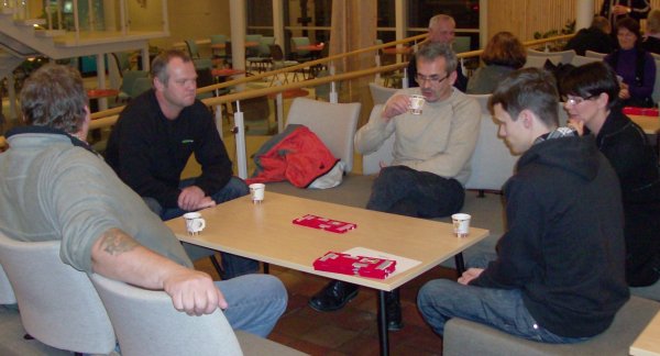 A-Pulja der tapte vårt lag 10-20 mot Sarpsborg BK. Dette var ikke så bra spilling. Lars og Jan Erik rotet det til i starten. Spille 3 spar på 3-1 tilpass gir ikke så mye poeng. Denne får jeg ta på meg. Deretter så melder Jan Erik 2 spar i stedet for 2 hjerter(Tar feil i meldeboksen, var vel sjokkskadet at jeg passet på hans splinter runden i forveien. Buklandet i 3 NT, og hadde 8 toppstikk, Det er en mulighet å klare denne hvis motparten ikke vrir spar, og vi går ned med 4 beit. Deretter så dobler vi en 3 spar som bør gå 2 beit med spar ut. Neida,de får krysset hjem 9 stikk. Lå kun 11 poeng etter første halvrunde, og var ved godt mot. I andre halvrunde så hadde ikke Niels og Jan noen toppliste, samt at Jan Erik og Lars Erik ikke hadde gjort det mer enn brukbart, så holdt det ikke inn. Tapte 2. halvrunde med 19 IMP.
