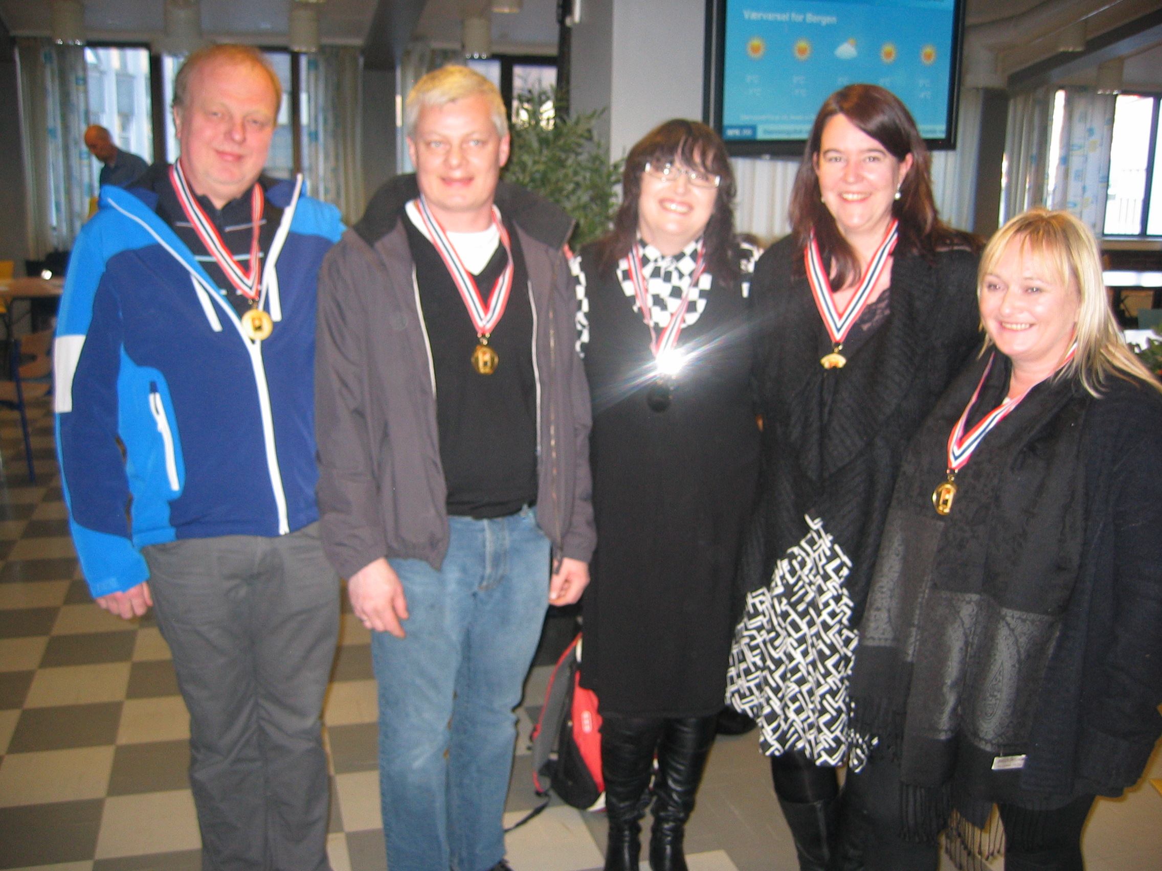 Vi gratulerer Reidar Johnsen, Stein Atle Juvik, Ann-Mari M. Juvik, Kristine Breivik, Sølvi Remen og Jørn Thunestvedt(Ikke tilsted da bildet ble tatt) og ønsker lykke til i 2. divisjon. Foto: Per Gunnar Bukkholm.