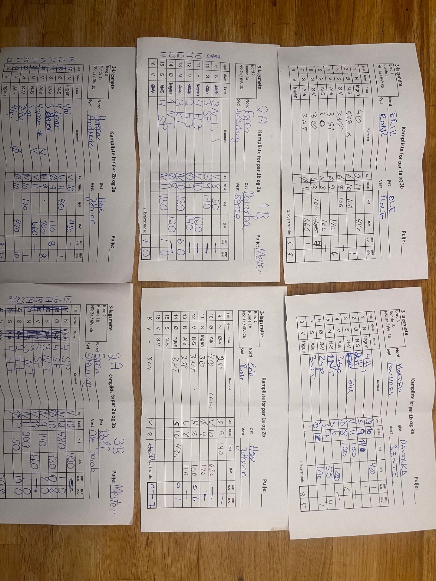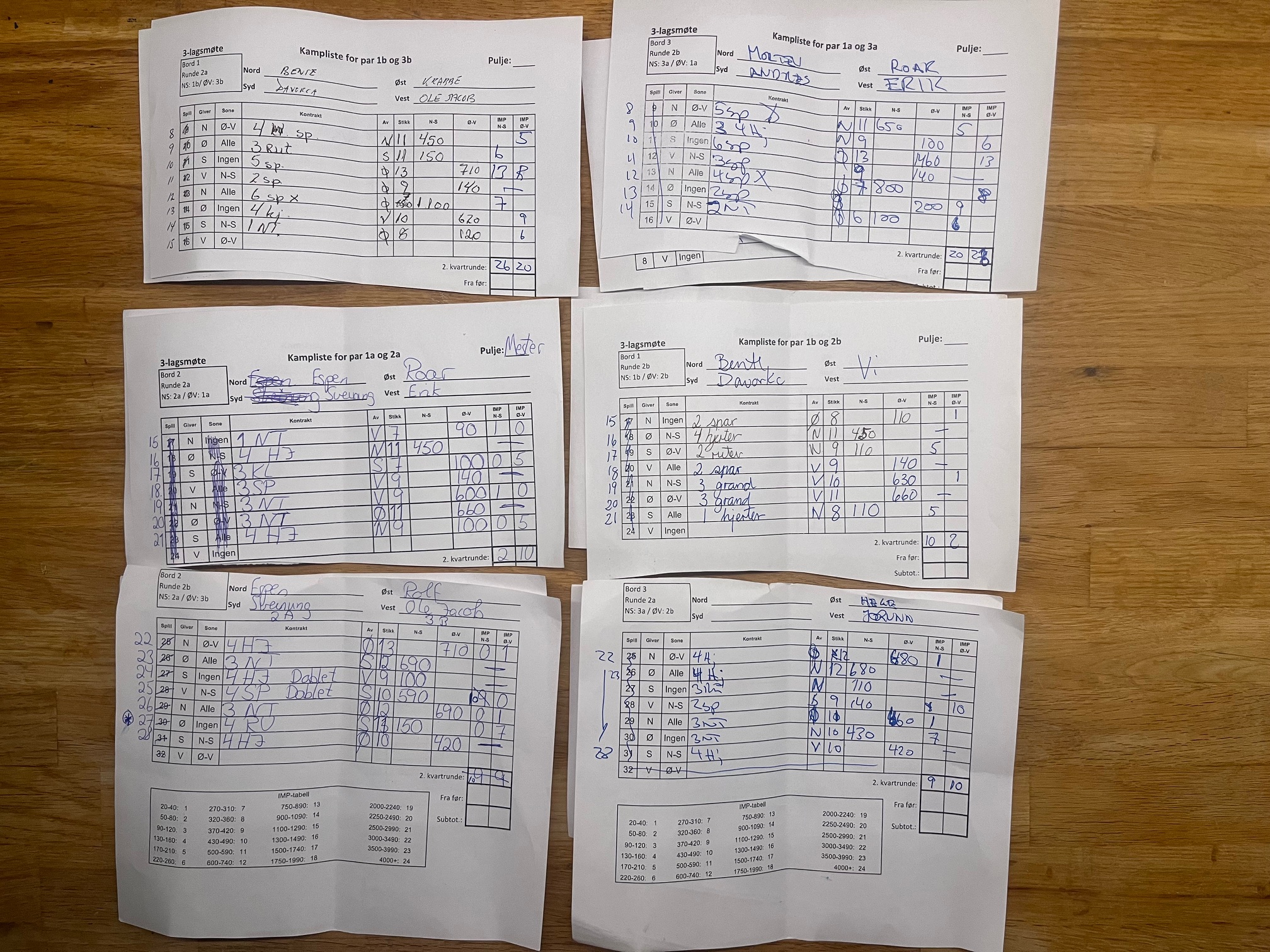 Merk at 6 kløver står selv med en taper i kløver, for i den kontrakten er det enklere med overganger, og en vellykket hjerterfinesse kan tas. Det er også mulig å vinne 6 hjerter og 6NT. En computeranalyse viser altså at 6NT også kan vinnes, men det må vel være med en sær spilleplan som baserer seg i at nord har alt og kløveren ikke gir seks stikk; nord alene om sparholdet, har begge de røde kongene og er alene om ruterholdet også (den fjerde ruteren). Nord vil bli utsatt for et voldsomt press idet kløverstikkene tas. Såvidt jeg kan se kan for eksempel å gi bort ruterstikk til kongen i stedet for å gi bort stikk til hjerter konge fungere. Da baseres alt i at hjerter konge sitter i saks og at nord har den fjerde ruteren samt de fem sparene spillefører vet om. Det som så skjer er at nord blir skviset i tre farger idet kløverstikkene tas. Posisjonene som oppstår kan spesielt interesserte studere selv. Men det ble altså bet i 6NT, og siden Sunndalsøra spilte utgang tapte Bergen Ak 12 IMP på dette spillet uten at de hadde gjort noe galt. Og bergenslaget vant altså kampen ganske klart, så de er klare for lagfinalen sammen med sine klubbkamerater på Bergen Ak 1.